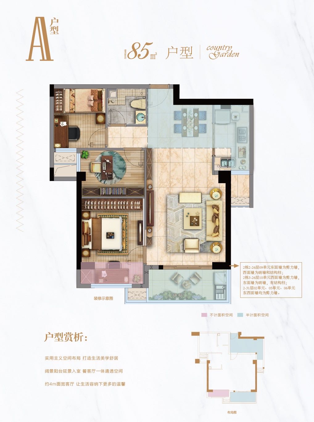 1、实用主义空间布局,打造生活美学舒居; 2、阔景阳台延景入室,餐客厅一体通透空间; 3、约4米面宽客厅,上生活容纳下更多的温馨
