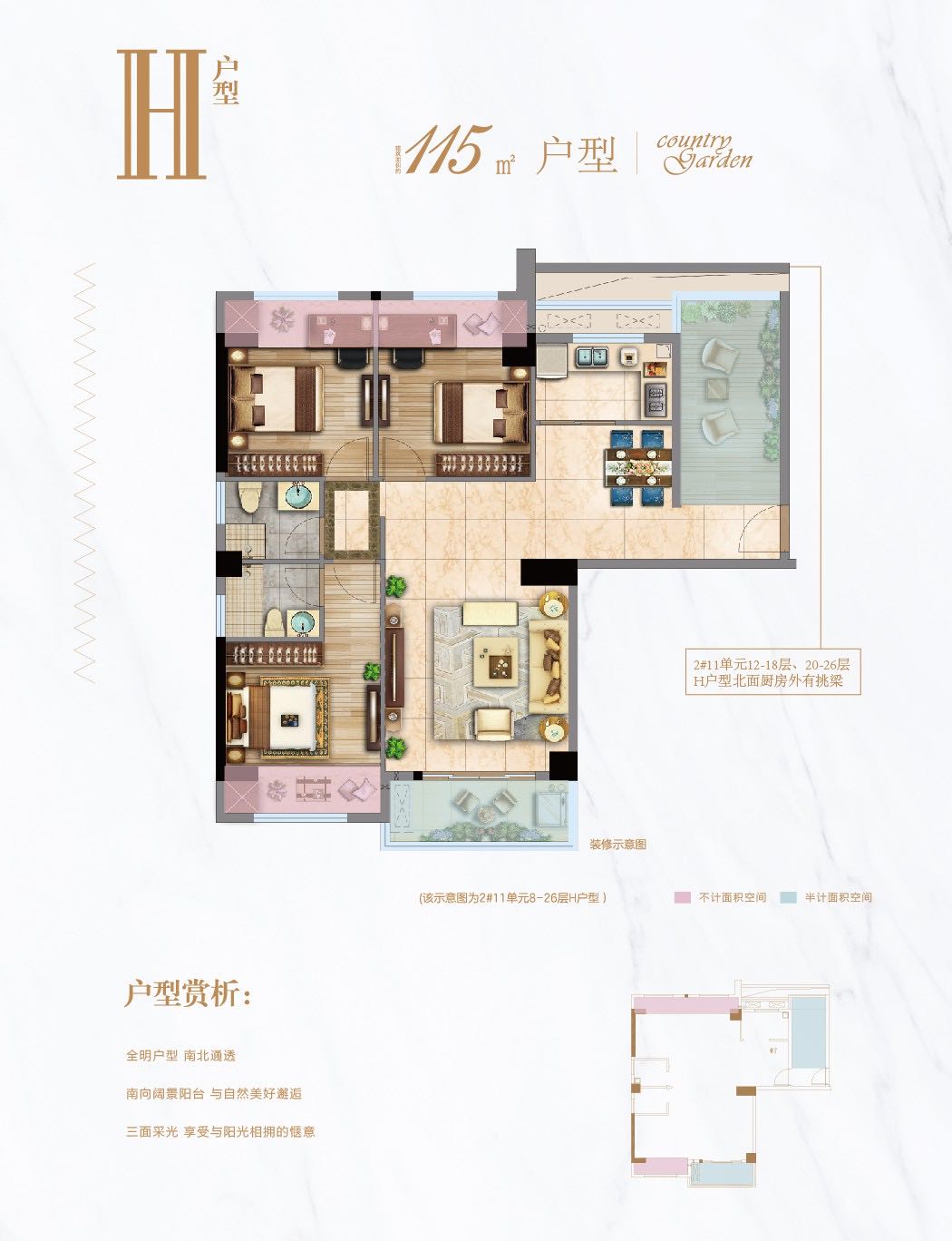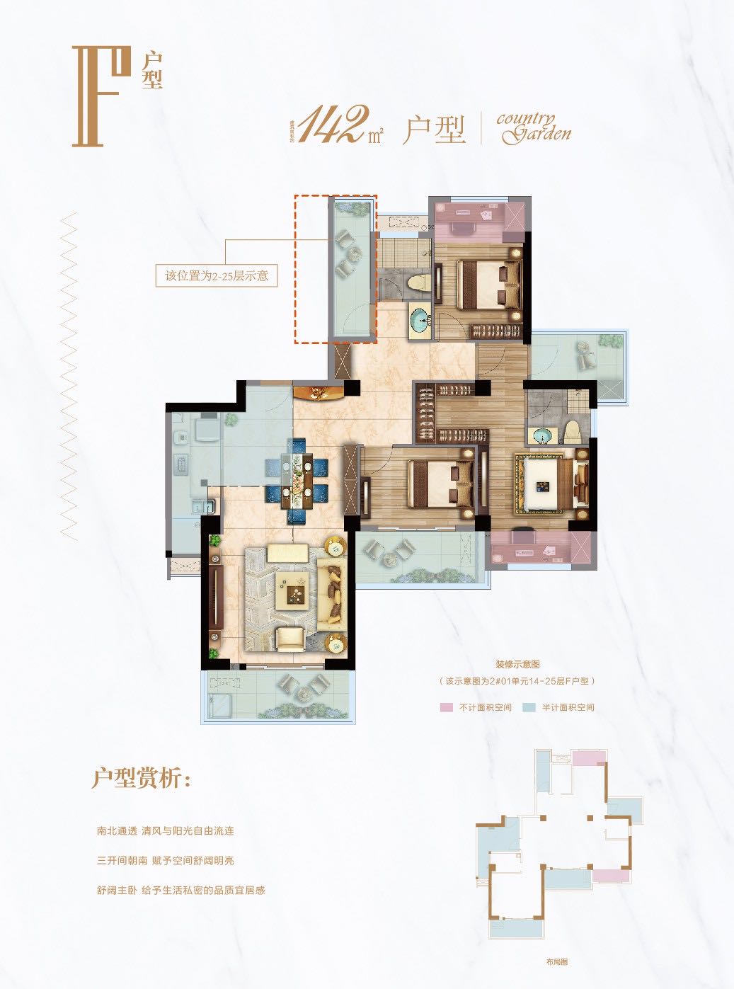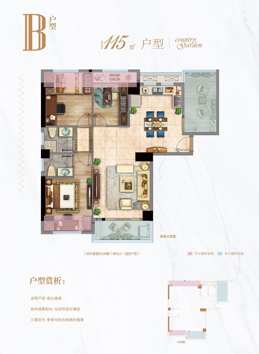 1、全明户型,南北通透; 2、南向阔景阳台,与自然美好邂逅; 3、三面采光,享受与阳光相拥的惬意