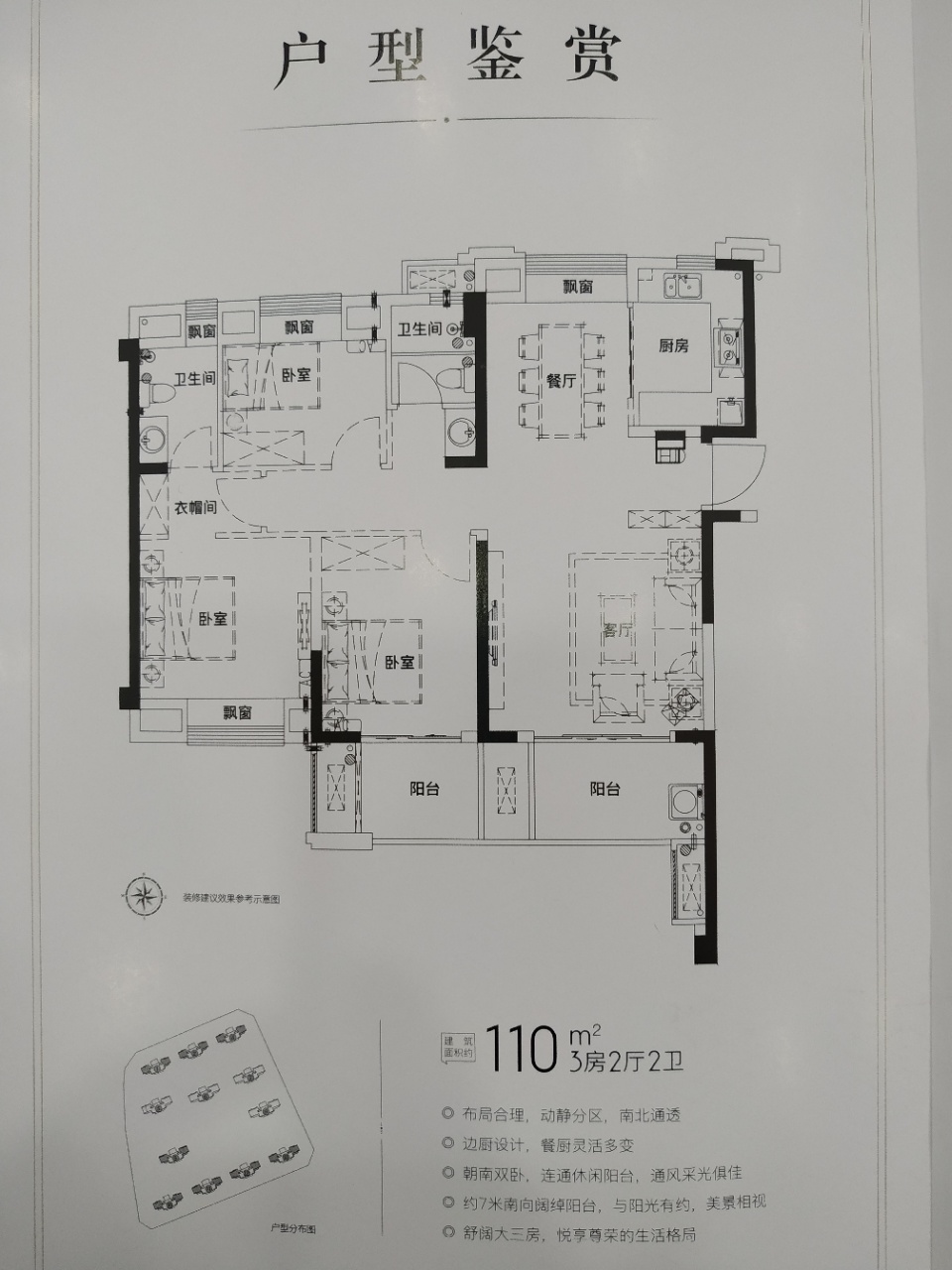 1、大开间短进深,三开间朝南,采光通风俱佳; 2、南向约6.3米阳台连接奢阔客餐厅,延伸空间视野; 3、主卧专属独卫、衣帽间,畅想私密空间; 4、双卫设计独立,干湿分离,方便生活起居; 5、雅致三房,小空间大有可为。