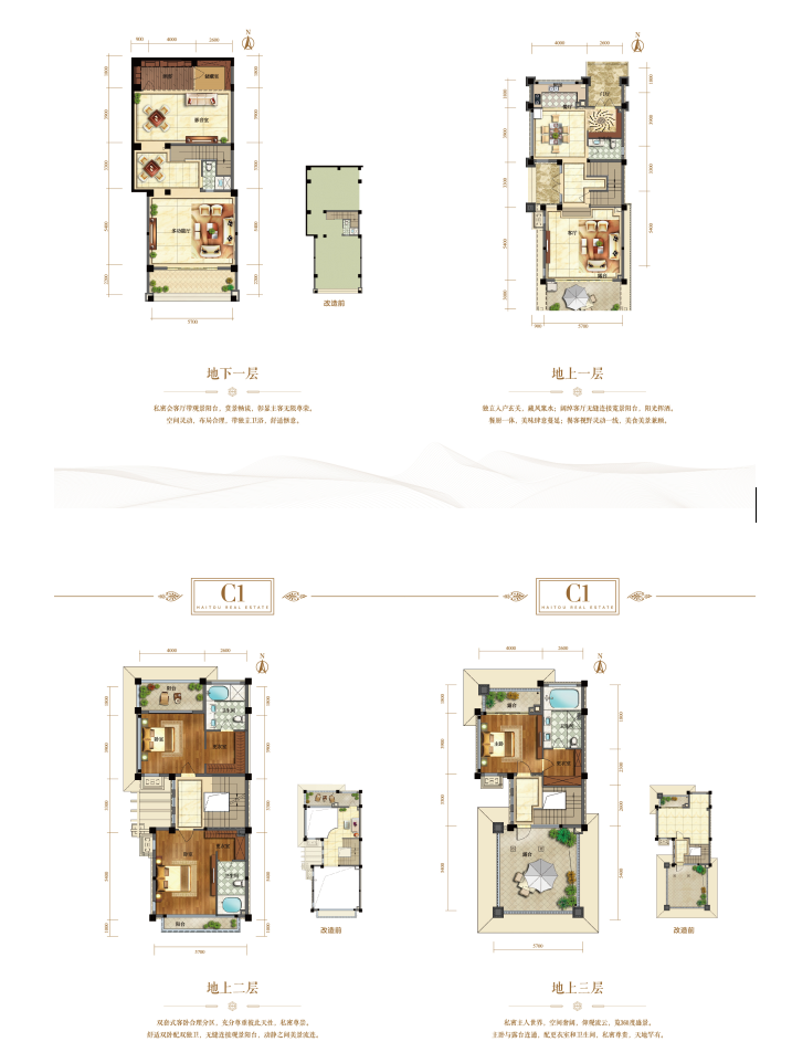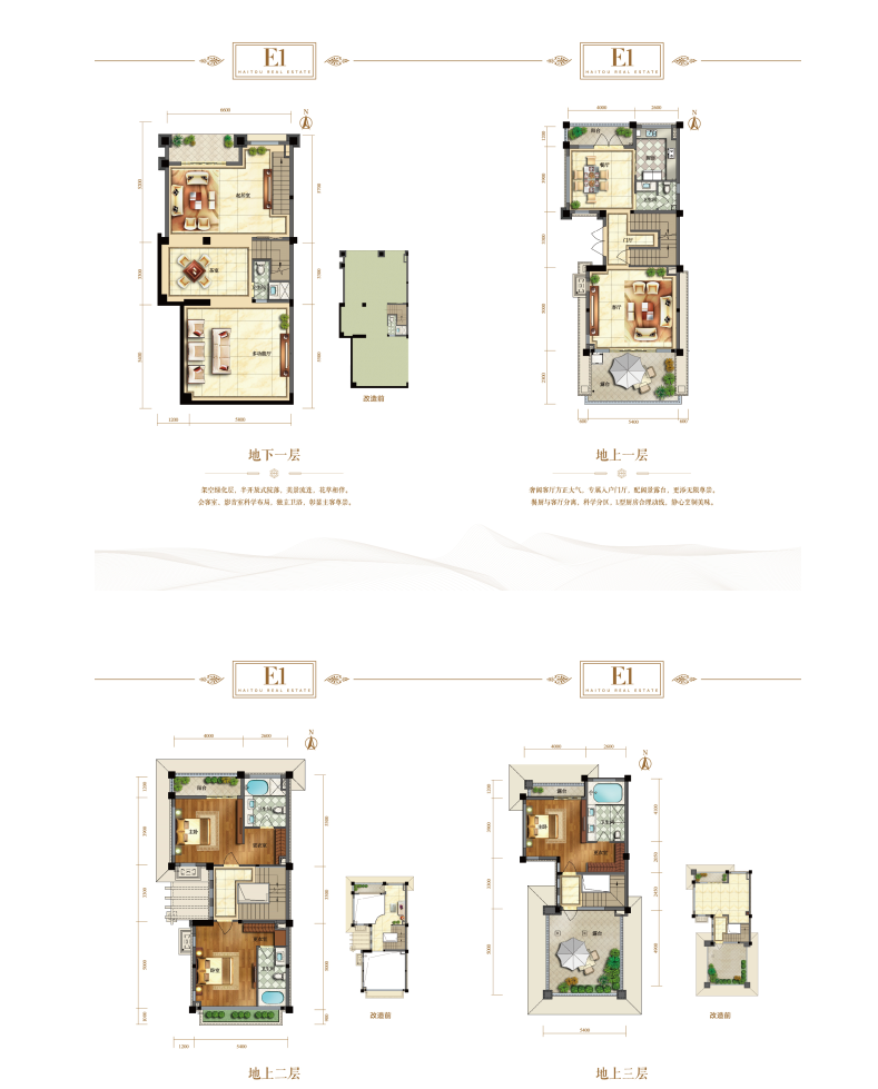 户型设计上做到南北通透、全明采光,大尺度的客厅挑高,双地下室及多露台设计,赠送率最高可达150%。由于依山而建,形成了独有的坡地式无遮挡景观层次,并使得地下室全明采光,达到负一层可当一层使用的效果。